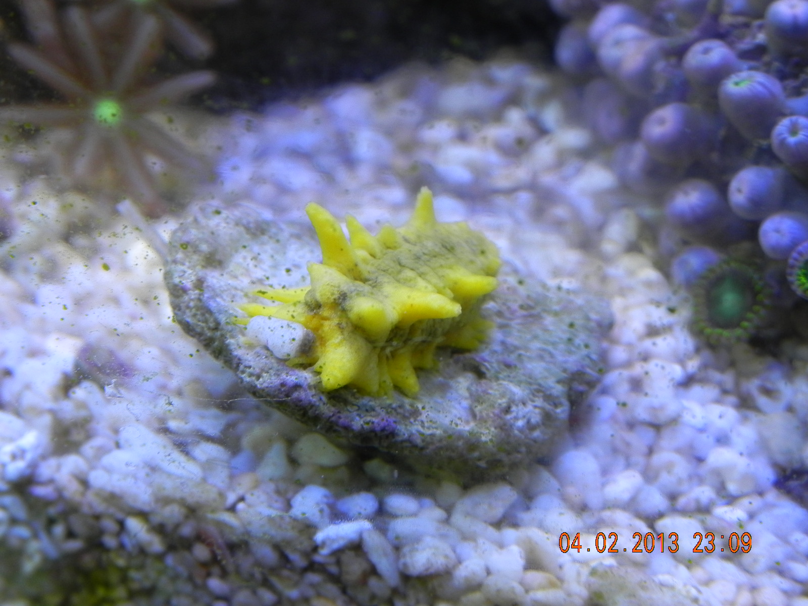 After the green Caulerpa was removed, the tank looked so bare and boring. So I got a yellow Sea Cumcumber Calvin and a Fire Shrimp Felicia to add some colours to it.